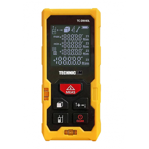 Лазерный дальномер TC-DM40L – прибор для проведения измерений на расстоянии 40 метров. Все измерения можно проводить в метрах, футах или дюймах. Скорость проведения измерений 0,25с, информативный четырехстрочный дисплей, два пузырьковых уровня, степень влагозащиты IP54. Данный прибор имеет 2 точки отсчёта и функцию измерения углов. C помощью лазерного дальномера TC-DM40L можно выполнять все основные типы измерений: расстояние до объекта, длина, ширина, высота, вычисление площади и объема, специфические измерения, такие как функция Пифагора.