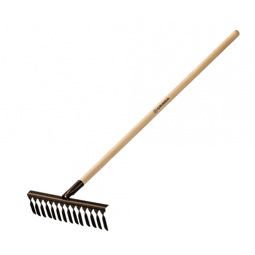 Садовые грабли с деревянным черенком GRINDA 14 витых зубьев, 444х95х1300 мм 39581-14 используются для очистки придомовой территории от скошенной травы, опавших листьев и другого мусора. Также применяются для выравнивания и рыхления почвы на грядах и клумбах. Благодаря витым зубьям сухой мусор отлично удерживается рабочей частью. Грабли изготовлены из стали и укомплектованы деревянным черенком, благодаря чему инструмент полностью готов к использованию.