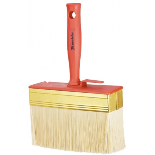 Кисть 30 х 120 мм, с искусственной щетиной, пластмассовыми корпусом и ручкой, применяется для малярных работ на участках большой площади, поэтому удобна для обработки стен, потолков и фасадов. Подходит для работы с ЛКМ на водной основе, поскольку искусственная щетина не деформируется и сохраняет упругость при контакте с ними.