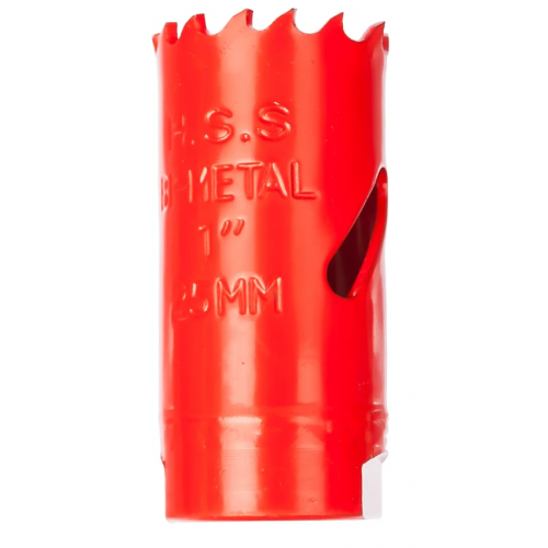 Диаметр пилы кольцевой биметаллической составляет 25 мм. Пильное полотно выполнено из быстрорежущей стали HSS, имеет разведённые зубья. Пила имеет глубину сверления до 38 мм.