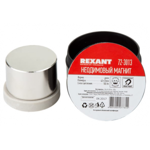 Магнит неодимовый диск 45х30 мм 100кг REXANT 72-3013