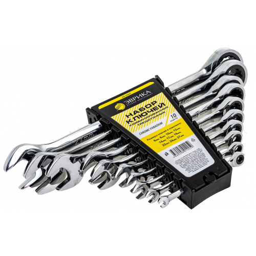Набор ключей комбинированных трещоточных 6 - 27 мм (10 пр) Эврика ER-20627