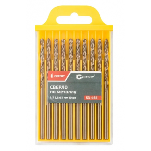Сверло по металлу EXPERT 10 шт, 2.5x57 мм CUTOP 53-465 предназначено для сверлений отверстий в углеродистых и легированных сталях, серых и ковких чугунах, цветных металлах и пластике.