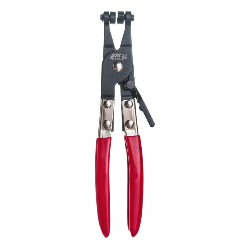 Съемник хомутов с фиксатором JTC-1027 удобен для демонтажа нижнего патрубка радиатора. Подходит для работы с большинством видов хомутов. Изделие оснащено ручным фиксатором положения, который позволяет держать захватные части открытыми.